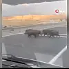 Adıyaman'da aniden yola çıkan domuz sürüsü, yoldan geçen araçtakilerde paniğe neden oldu.